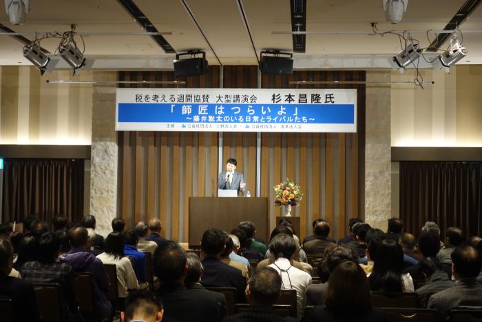 2025年12月03日更新 最新の活動報告 講演会 税を考える週間協賛【大型講演会】杉本昌隆氏「師匠はつらいよ~藤井聡太のいる日常とライバルたち~」 2025年11月27日 18:00~ 東天紅上野本店3階「鳳凰の間」 浅草法人会との共催で税を考える週間協賛「大型講演会」を開催いたしました。今年度は将棋棋士の杉本昌隆氏をお招きして、「師匠はつらいよ~藤井聡太のいる日常とライバルたち~」をテーマに講演していただきました。