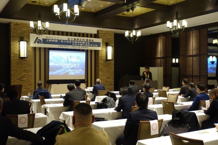 2023年02月09日更新 最新の活動報告 青年部会 【青年部会】青年セミナー「五十嵐泰正氏講演会」 2023年2月9日 17:00~18:00 東天紅上野本店6階「ルナホール」 青年セミナー「上野新論:ありあまる都市的魅力をコロナ後に活かすには」を開催しました。講師は筑波大学人文社会系教授の五十嵐 泰正(いがらし やすまさ)先生です。五十嵐先生は上野まちづくり協議会事務局アドバイザーにも就任されており、大変興味深いご講演をいただきました。