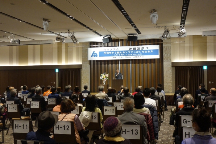 2023年03月07日更新 最新の活動報告 講演会 【特別講演会】池田清彦氏講演会「生物学から観たホンマでっか!?な生き方~人生を楽しく生きるために~」 2023年3月7日 18:00~ 東天紅上野本店3階「鳳凰の間」 今年度の特別講演会は生物学者の池田清彦先生をお招きして、「生物学から観たホンマでっか!?な生き方~人生を楽しく生きるために~」をテーマに講演していただきました。池田先生は各メディアでご活躍されており、お話も大変面白く、大勢の方にご参加いただき、大変好評でした。