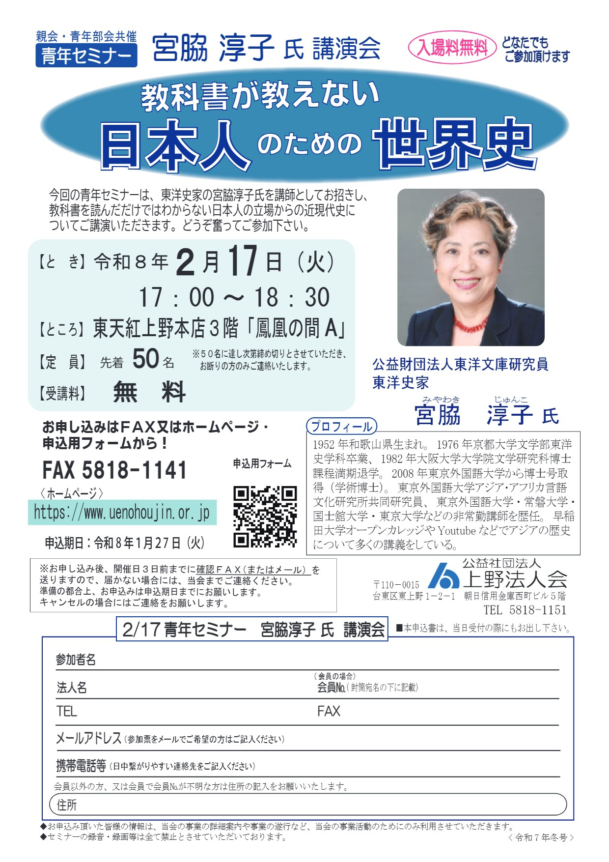 青年セミナー【宮脇淳子氏講演会】教科書が教えない日本人のための世界史