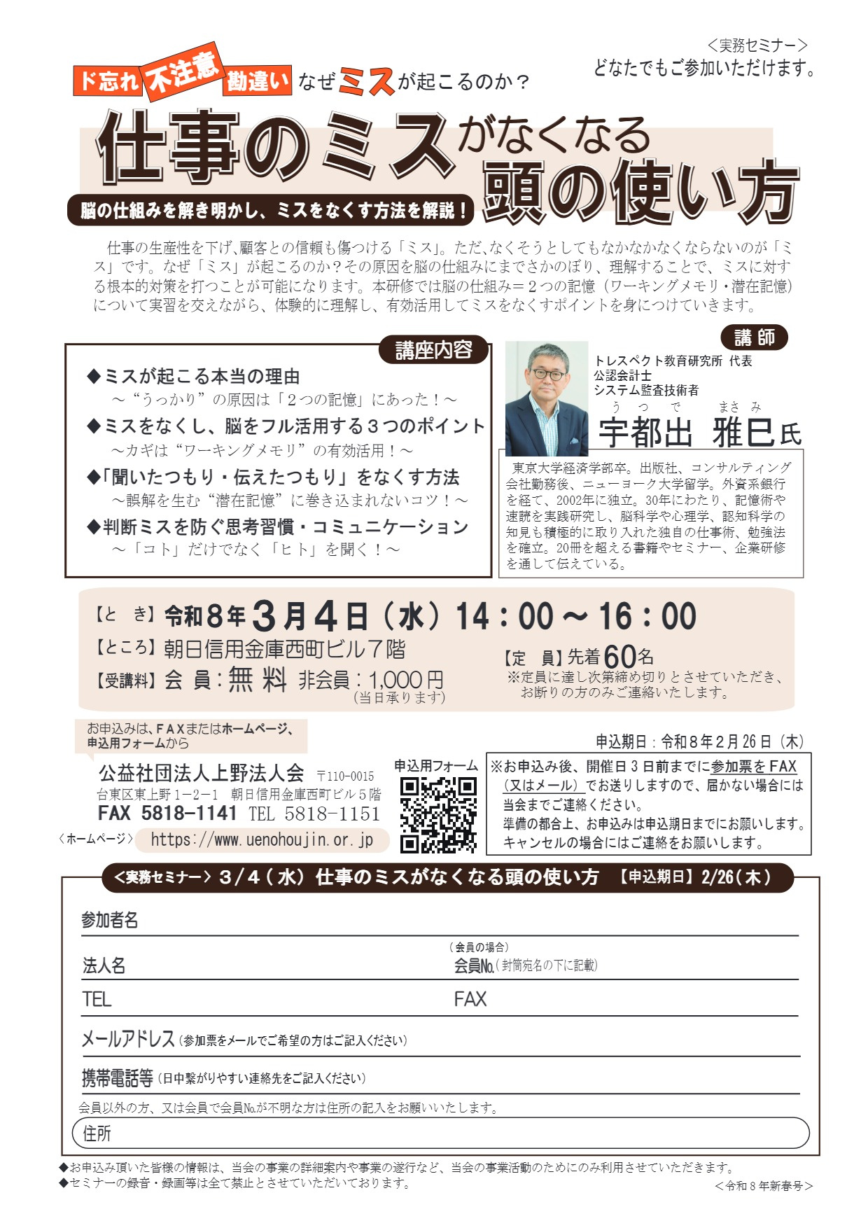 【実務セミナー】仕事のミスがなくなる頭の使い方