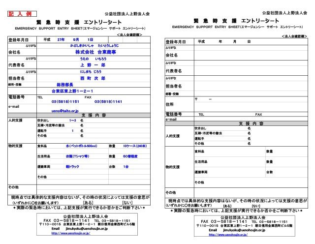 下記のお申し込み用紙にご記入の上、FAX、郵送又はメール添付にて上野法人会事務局までお申込み下さい。