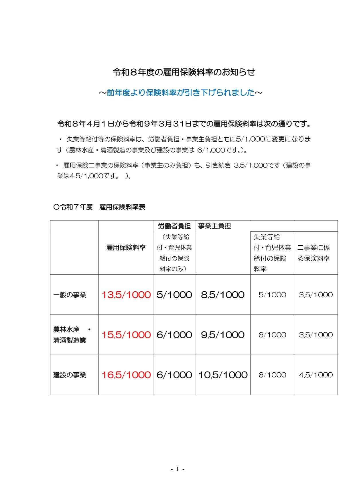 ~前年度より保険料率が引き下げられました~