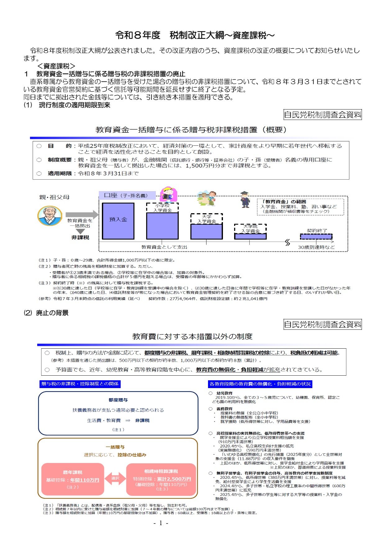 令和8年度税制改正大綱が公表されました。その改正内容のうち、資産課税の改正の概要についてお知らせいたします。